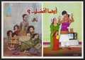 A large poor family compared with a contented family of four representing the Family planning Project in Egypt. Colour lithograph by the MInistry of Health, ca. 2000.