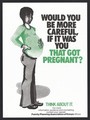 A pregnant school girl with a message about being careful: family planning in Kenya. Colour lithograph by Family Planning Association of Kenya, ca. 2000.