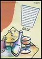 A bottle and a glass with drugs on a table; an advertisement for the National Aids Helpline by the Liverpool Health Promotion Unit. Colour lithograph, 1994.