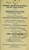 De morbis quibusdam encephali organicis : dissertatio inauguralis medica ... / auctor Axel Bengelsdorff.