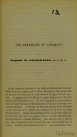 Cataract : a familiar description of its nature, symptoms, and ordinary modes of treatment, particularly with reference to the system devised, and carried into extensive operation, by the author, at the "Royal Infirmary for Cataract" and in his private practice, with almost invariable success / by John Stevenson.