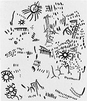 M0004884: Line drawing of human and animal figures, from Les Combarelles