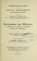 Environment and efficiency : a study in the records of industrial schools and orphanages / by Mary Horner Thomson.
