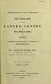 A genealogical and heraldic dictionary of the landed gentry of Great Britain & Ireland for 1852 : comprising particulars of upwards of 100,000 individuals / by J. Bernard Burke.
