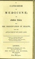 A catechism of medicine; or golden rules for the preservation of health, and the attainment of long life / [William Pinnock].