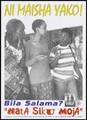 Mueleze! Bila Salama? Hata siku moja by the Tanzania AIDS Project Social Marketing Unit (PSI) as part of AIDSCAP. Colour lithograph, ca. 1996.