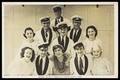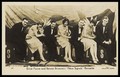 Members of "Harry Gold's Margate Entertainers", one in drag, pose for a group portrait. Photographic postcard, 1937.