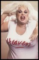 "Divine" in character, wearing a "Heaven" t-shirt. Colour photographic postcard, 198-.