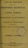 Facts and observations in relation to the proposed removal of the cattle market from Smithfield to Duddeston : and the appropriation of Smithfield market to the purposes of a wholesale fruit and vegetable market / by Alderman Osborne.