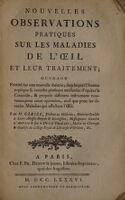 - Nouvelles observations pratiques sur les maladies de l'œil et leur traitement. Ouvrage fondé sur une nouvelle théorie, dans lequel l'auteur explique & concilie plusieurs méthodes d'opérer la cataracte, & propose différens instrumens nouveaux pour cette opération, ainsi que pour les diverses maladies qui affectent l'oeil / par M. Gleize.Gleize, M. (Jean François)Date: 1786