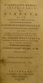 Dissertatio medica inauguralis, quaedam de diabete complectens : quam, annuente summo numine : ex auctoritate reverendi admodum viri, D. Gulielmi Robertson, S.S.T.P. Academiae Edinburgenae Praefecti : nec non amplissimi senatus academici consensu, et nobilissimae facultatis medicae decreto : pro gradu doctoratus, summisque in medicina honoribus ac privilegiis rite et legitime consequendis / eruditorum examini subjicit Antonius Mann, Hibernus, Soc. Phys. Edin. et Soc. Chem. Sodalis.