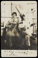 Two sailors (?) on board ship: one in drag is playing a guitar. Photographic postcard, 1907.