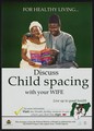 A woman points to the IUCD: family planning in Nigeria. Colour lithograph by Planned Parenthood Federation of Nigeria, ca. 2000.