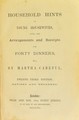 Household hints to young housewives : with the arrangements and recipts for forty dinners &c. / by Martha Careful.