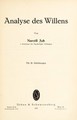 Analyse des Willens / von Narziss Ach.