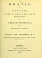 Oratio in theatro Collegii Regalis Medicorum Londinensis, ex Harveii instituto, habita, die Octob. XVIII, an. M.DCCC.VI / a Christo. Robo. Pemberton.