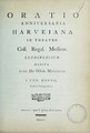 Oratio anniversaria Harveiana : in theatro Coll. Regal. Medicor. Londinensium habita XVIII die Octob. MDCCXCIX / â Thomas Monro.