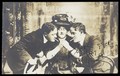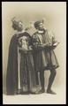 Ralph Mellor in drag and another actor perform a scene in Trilby. Photographic postcard by L.S. Langfier, 192-.