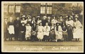 Women in costume pose for a large group portrait on the street; for "Oh Marguerite". Photographic postcard, 1923.