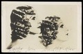 Bartlett and Ross in drag pose in profile, with matching hair and make-up. Photographic postcard, 1937/1938.