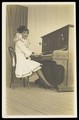A man in drag playing the piano. Photographic postcard by Legg (?) & Co., 192-.