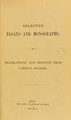Selected essays and monographs : translations and reprints from various sources.
