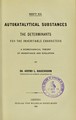 Autokatalytical substances : the determinants for the inheritable characters : a biomechanical theory of inheritance and evolution / by Arend L. Hagedoorn.