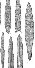 M0015102: Illustration of spear heads or knives bifacially worked in flint