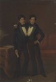 Chang and Eng Bunker. Oil painting by Edouard-Henri-Théophile Pingret, 1836.