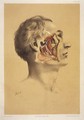 Dissection of the side of the face, with the muscles and blood vessels indicated. Colour lithograph by G.H. Ford, 1864.