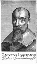 Abraham Zacutus Lusitanus. Line engraving, 1688.