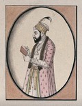 A member of the Mughal royal family, holding a book (?). Watercolour drawing by an Indian artist.