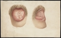 Tongue, mouth, and moustache of a man with skin disease: two figures. Watercolour, 1892.