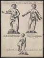 Three human figures, each with superfluous body parts growing from their bodies. Engraving, 16--.