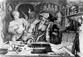 An alchemist in his laboratory. Oil painting after D. Teniers II.
