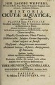 Joh. Jacobi Wepferi ... Historia cicutæ aquaticæ, : quâ non solùm plantæ hujus venenatæ structura naturalis, vires & operationes deleteriæ in hominibus ac brutis adcuratè describuntur, sciteque explicantur ... Adjectæ sunt ad calcem dissertationes de thee helvetico ac cymbalaria. / Curante Theodoro Zvingero.