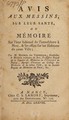Avis aux messins, sur leur santé, ou, Mémoire sur l'état habituel de l'atmosphere à Metz, & ses effets sur les habitans de cette ville / Par Michel du Tennetar.