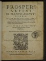 De plantis Aegypti liber. In qvo non pavci, qvi circa herbarum materiam irrepserunt, errores, deprehenduntur, quorum causa hactenus multa medicamenta ad vsum medicine admodum expetenda, plerisque medicorum, non sine artis iactura, occulta, atque obsoleta iacuerunt ... / Accessit etiam liber de balsamo, aliàs editus. Prosperi Alpini.
