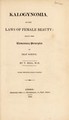 Kalogynomia, or the laws of female beauty: being the elementary principles of that science / By T. Bell, M.D. With twenty-four plates.