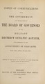 Copies of communications from the government, and transactions of the Board of Governors of the Belfast District lunatic asylum, with reference to the appointment of chaplains, from April, 1853, to March, 1854.