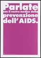 A pink background bearing the white lettering: "Parlate con il vostro medico della prevenzione dell'AIDS." [Talk to your doctor about prevention of AIDS]; an advertisement by the Swiss Physicians [FMH] and Swiss Federal Office of Public Health [UFSP]. Colour lithograph.