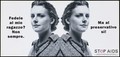 A mirror image of a woman wearing an open-necked shirt and beaded necklace with a heart pendant; with a message in Italian about how she is faithful condoms but not always to her 'Regazzo'; one of a series of safe sex posters from a 'Stop AIDS' campaign by Aiuto AIDS Svizzero in collaboration with the Federal Office of Public Health. Colour lithograph.