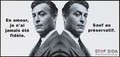 A mirror image of a man in a suit with a message in French about how he has never been faithful in love although he is to condoms; one of a series of safe sex posters from a 'Stop AIDS' by the Federal Office of Public Health, in collaboration with l'Aide Suisse contre le SIDA. Colour lithograph.