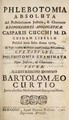 Phlebotomia absoluta : ad postulationem justitiæ, & charitatis responsiones apologeticæ / Casparis Cucchi M.D. cuidam libello publici juris facto anno 1719 ... cui titulus: Phlebotomia examinata.