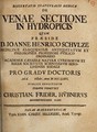 Dissertatio inauguralis medica de venae sectione in hydropicis / Quam praeside D. Joanne Henrico Schulze ... anni MDCCXXXVI, publice eruditorum examini submittet Christian. Frider. Hübnerus.