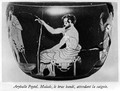 A fierce battle between the supporters of John Brown (Bruno), in favour of treatment with stimulants, and those of F.J.V. Broussais, in favour of bloodletting. Pen drawing.