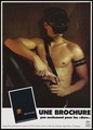 A bare-chested man against a brick wall wearing sadomasochism gear including leather trousers, a studded arm strap, a cap and a pierced nipple, pierces his thumb with the sharp end of a knife; with the front cover of a brochure with the title 'Safer Sex Hard'; an advertisement for safer hard sex by the AIDS-Hilfe Schweiz, AIDS Suisse Contre le SIDA and Aiuto AIDS Svizzero. Colour lithograph by Hans Winer and Loge 70.