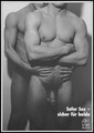 The front view of two naked men, one with his arms folded, the other with his arms around the other with the message in German: 'Safer sex - safe for both'; an advertisement for safe sex by the AIDS-Hilfe Schweiz, AIDS Suisse Contre le SIDA and Aiuto AIDS Svizzero. Lithograph, 1990.