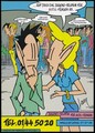 The rear jeans pocket of a man with a packet labelled "The hot rubber" and a toothbrush with the message 'who stays overnight ...' in German; advertisement for Hot Rubber condoms for gay men. Colour lithograph.