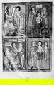 Two physicians applying the method of cauterisation to clearly defined points of the back and side of two patients. Pen drawing after an Anglo Saxon tenth century manuscript.